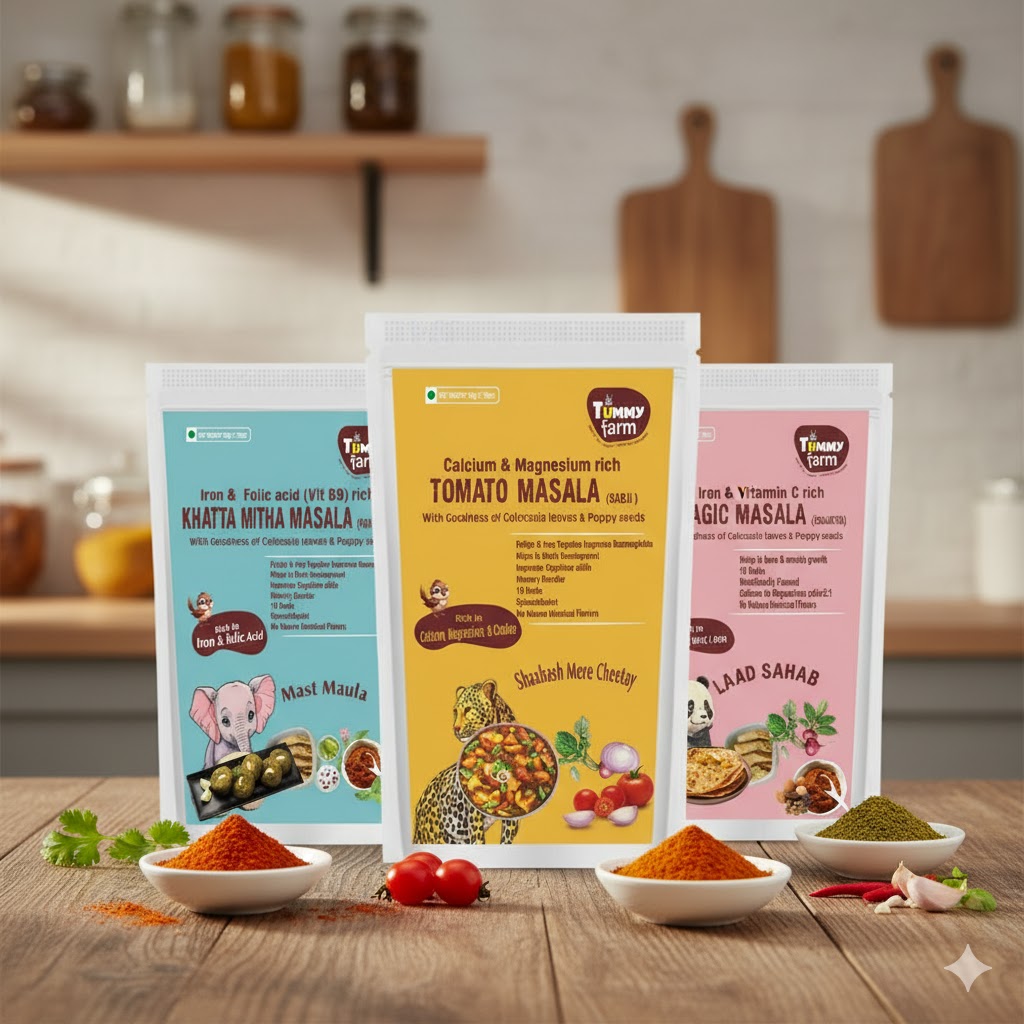 Tummy Farm Khatta Mitha Masala (Mast Maula) – Iron & Folic Acid (Vit B9) Rich Masala for Paranthas & Brain Development (50g)